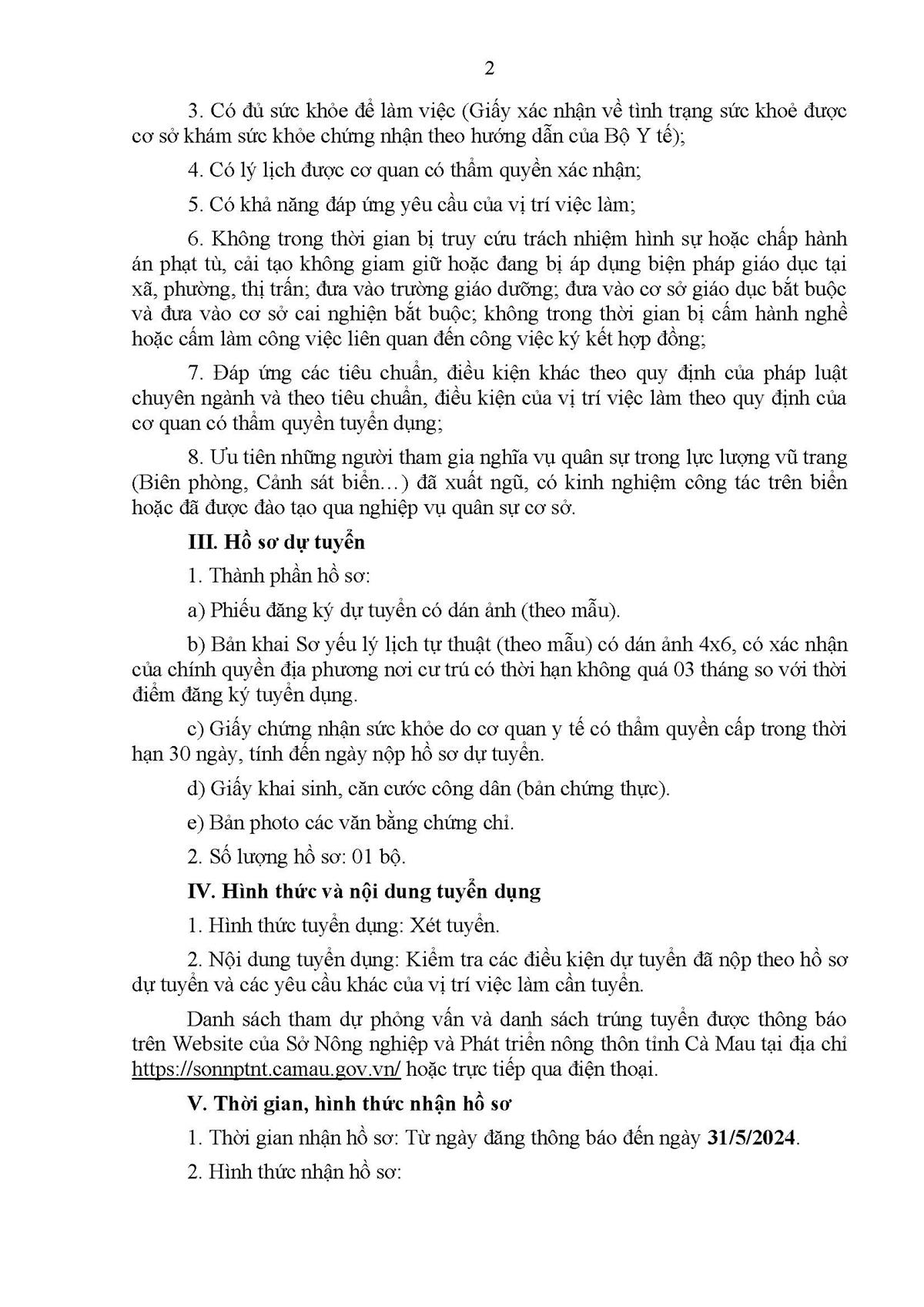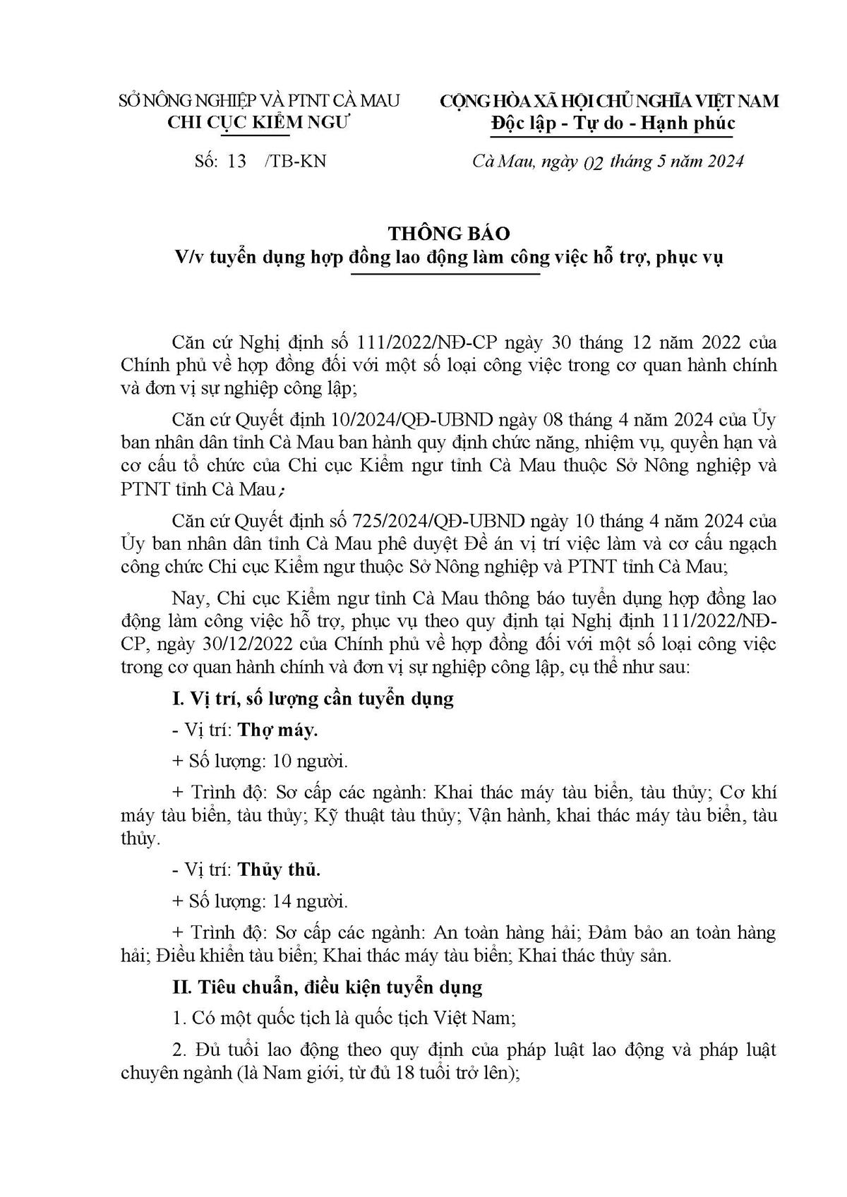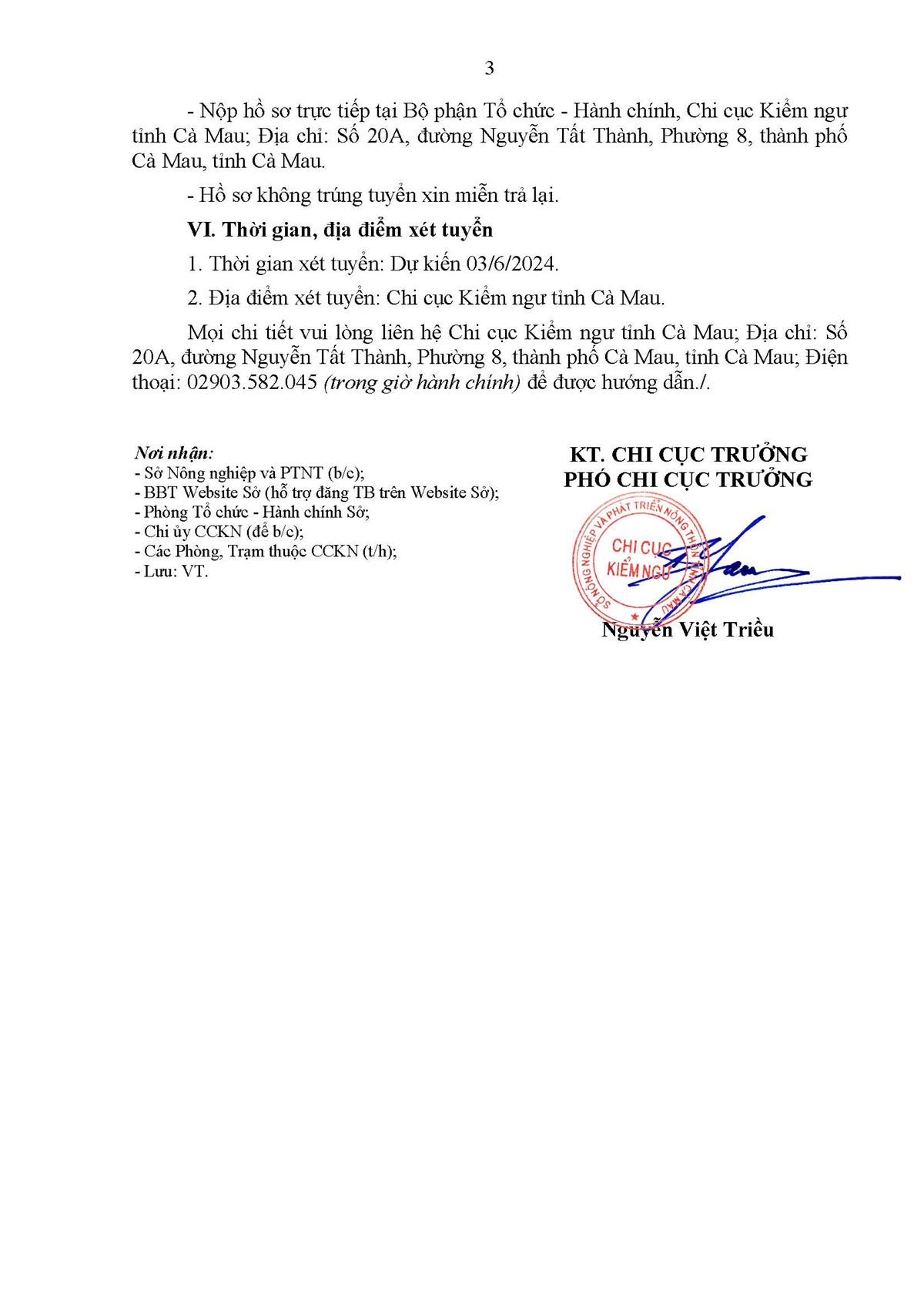[Thông báo Tuyển dụng] Chi cục Kiểm ngư Cà Mau